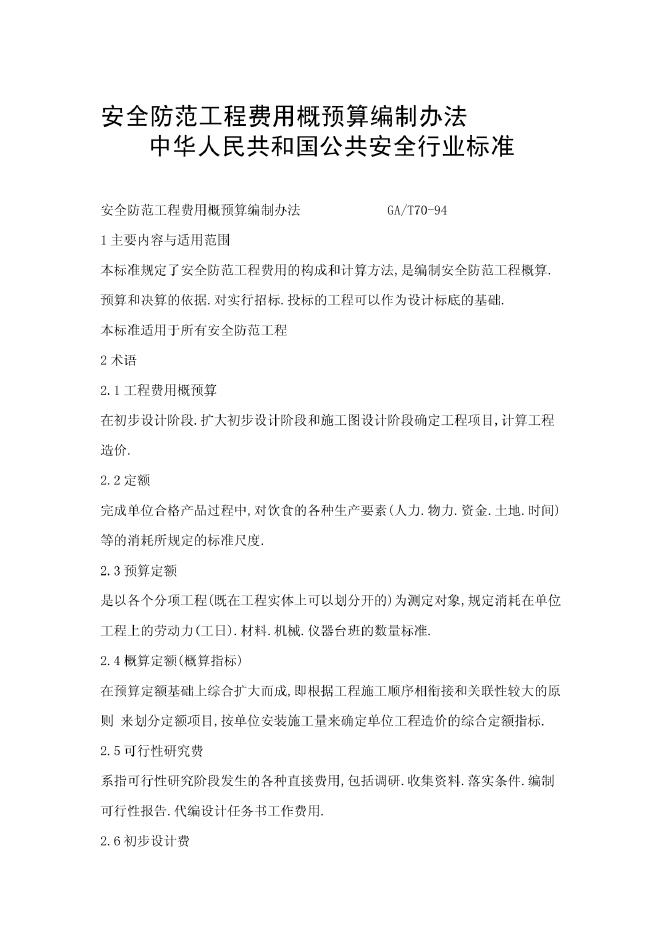 GA/T 70-1994 安全防范工程费用概预算编制办法