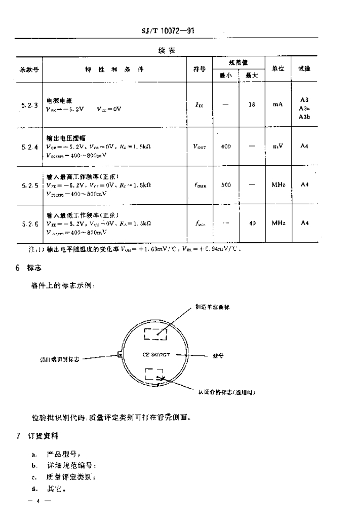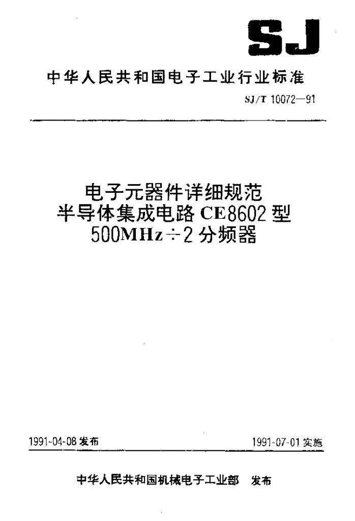 SJ/T 10072-1991 电子元器件详细规范 半导体集成电路CE8602型500MHz÷2分频器
