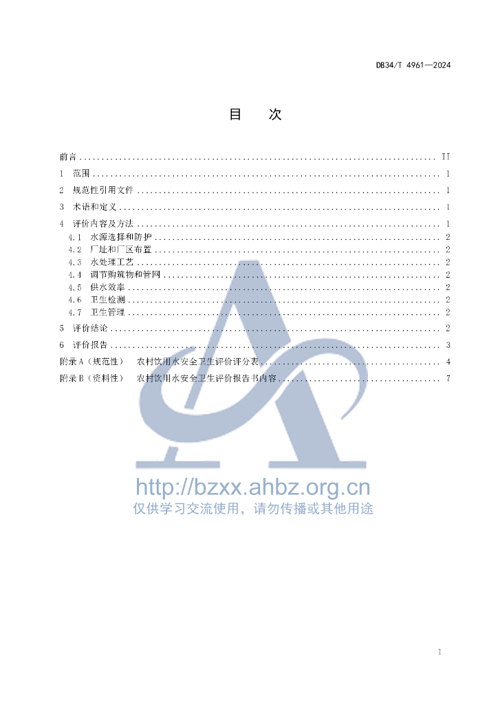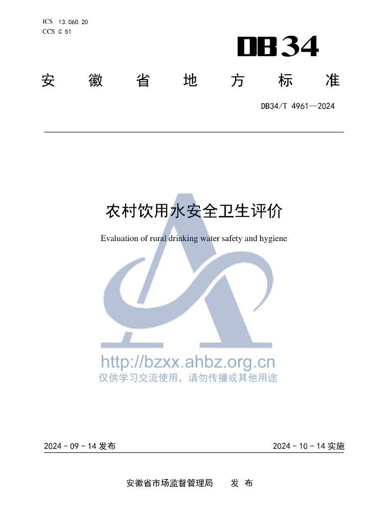 DB34/T 4961-2024 农村饮用水安全卫生评价