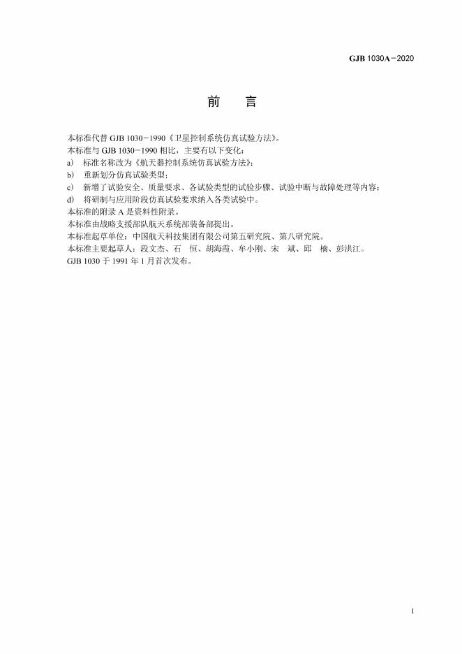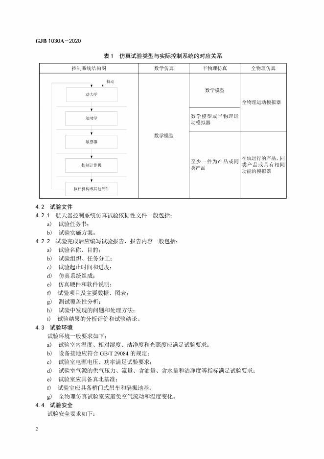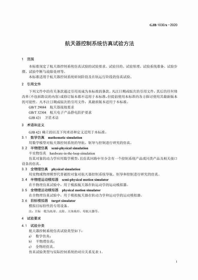 GJB 1030A-2020 航天器控制系统仿真实验方法