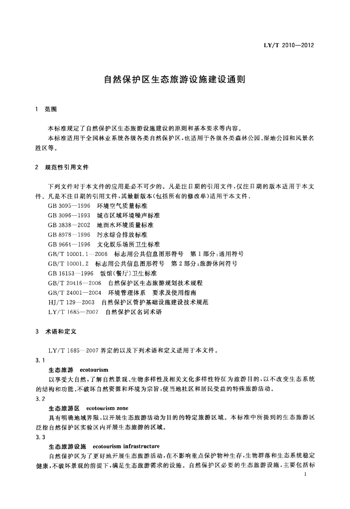 LY/T 2010-2012 自然保护区生态旅游设施建设通则