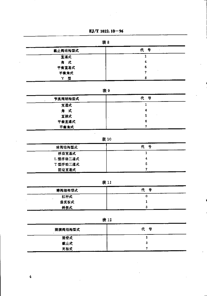 EJ/T 1022.10-1996 压水堆核电厂阀门 型号编制方法