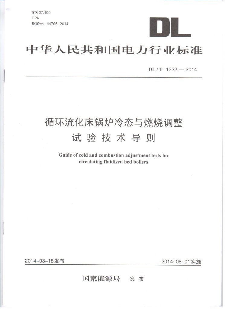 DL/T 1322-2014 循环流化床锅炉冷态与燃烧调整试验技术导则