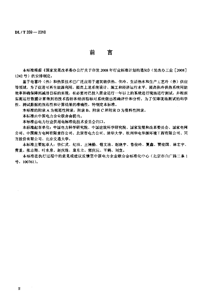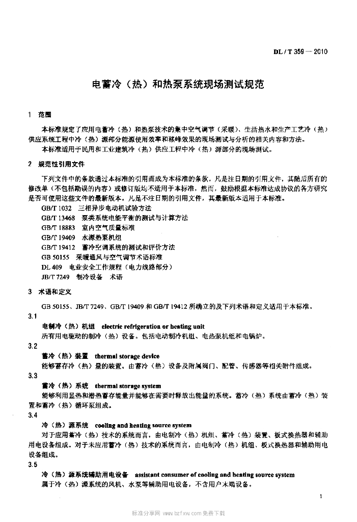 DL/T 359-2010 电蓄冷(热)和热泵系统现场测试规范
