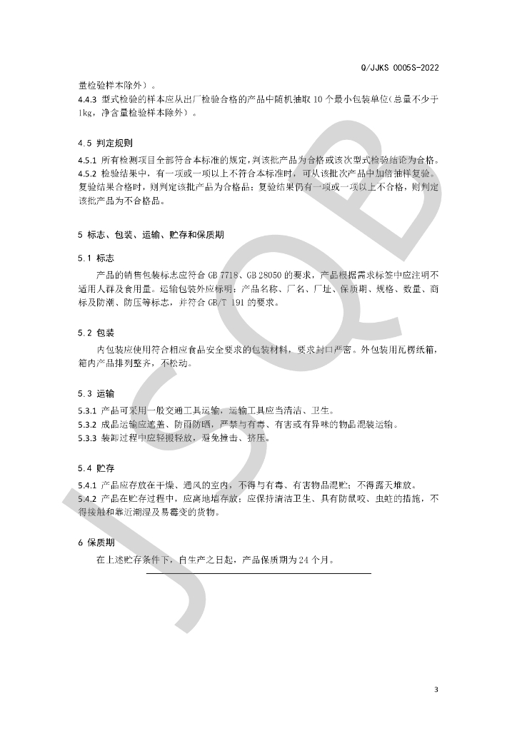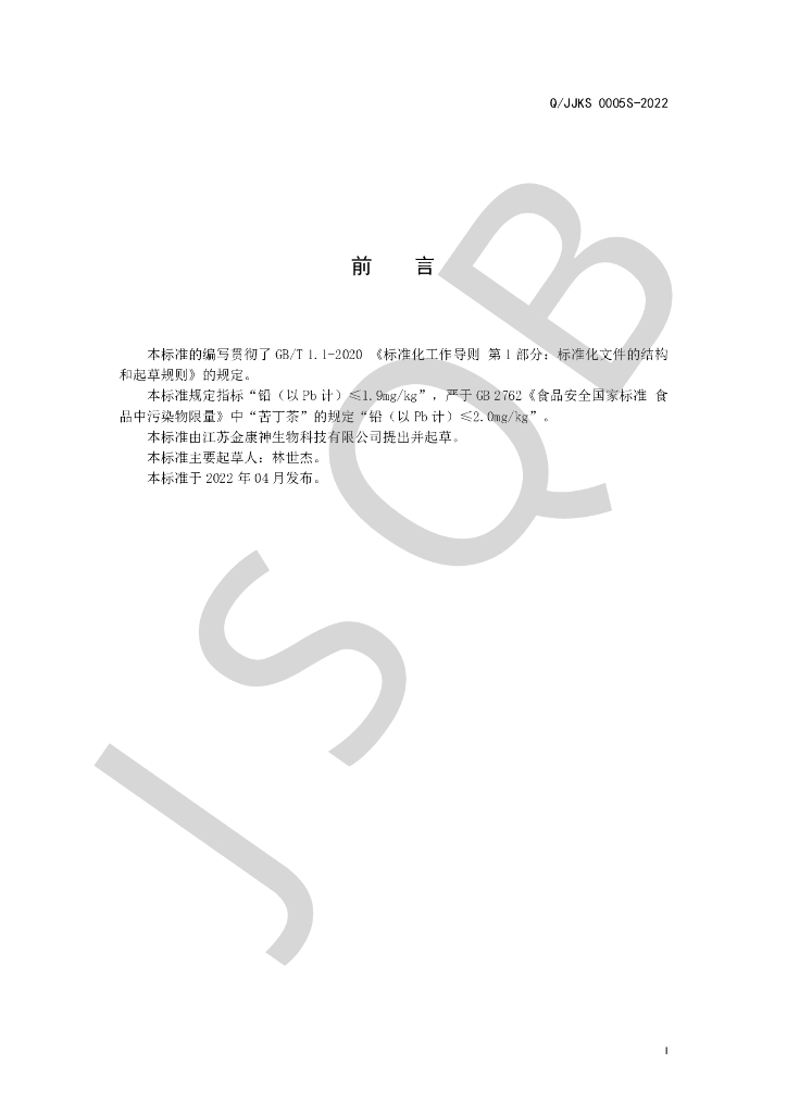 Q/JJKS 0005S-2022 黄精牡蛎茶(代用茶)