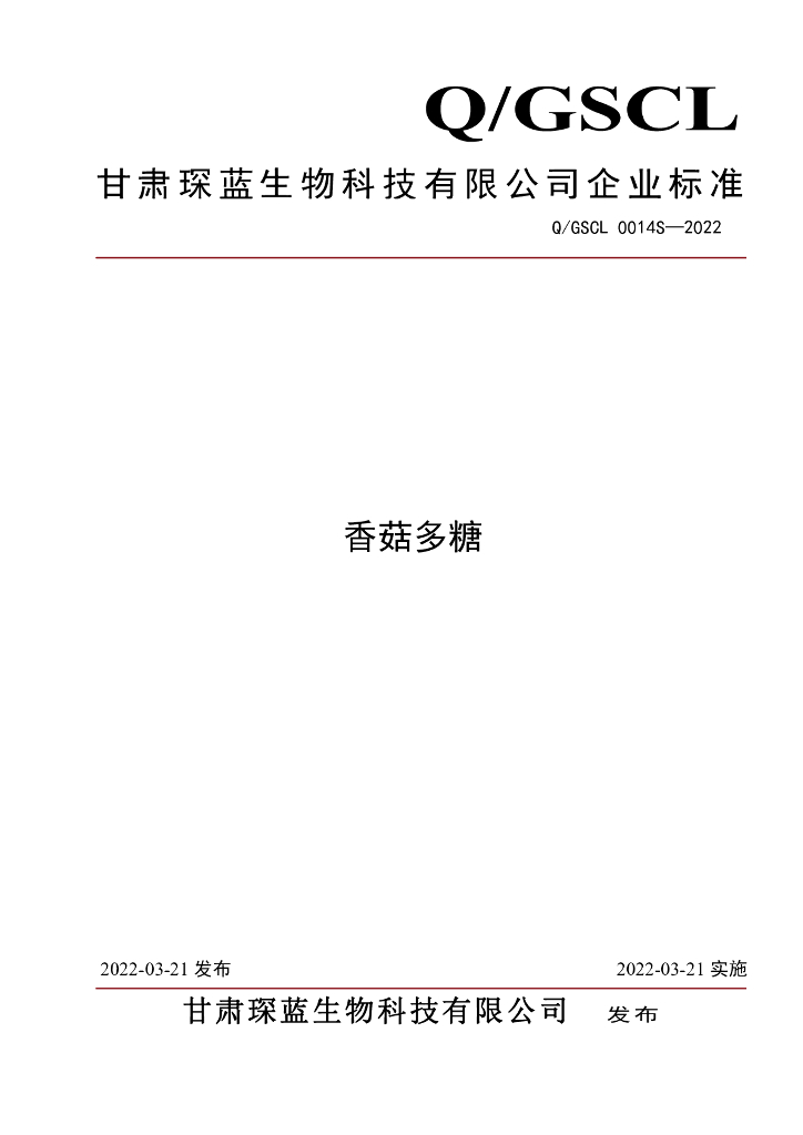 Q/GSCL 0014S-2022 香菇多糖