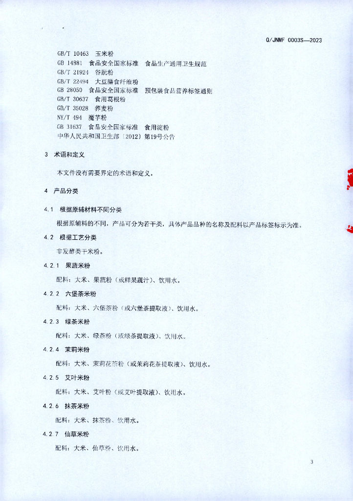 Q/JNMF 0003S-2023 花色米粉 广西京南米粉食品科技有限公司