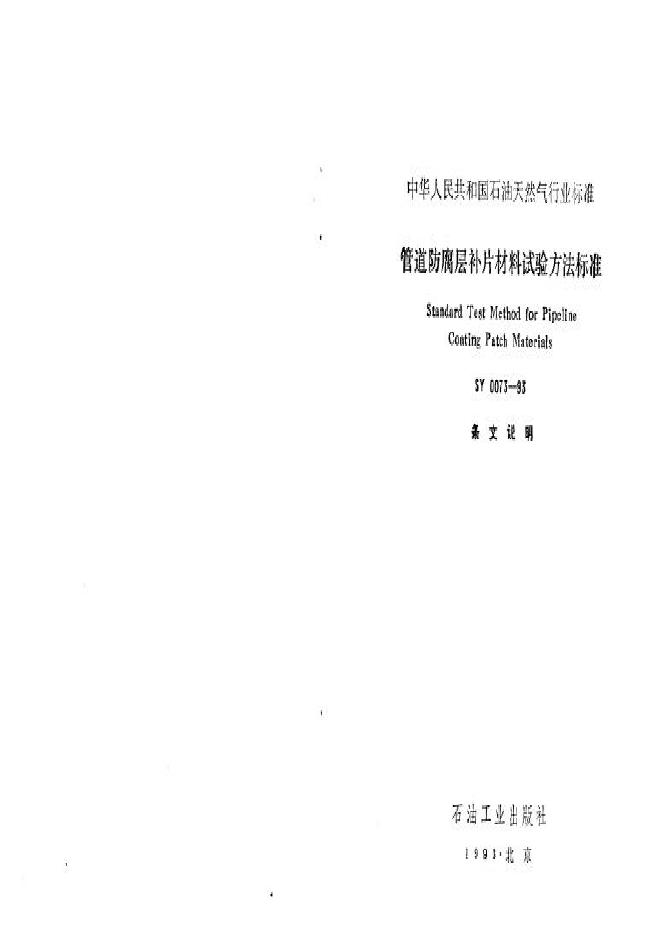 SY 0073-1993 管道防腐层补片材料试验方法标准