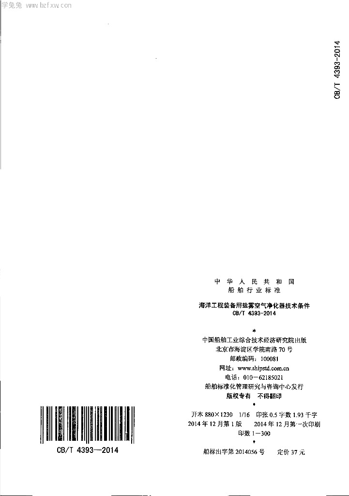 CB/T 4393-2014 海洋工程装备用盐雾空气净化器技术条件