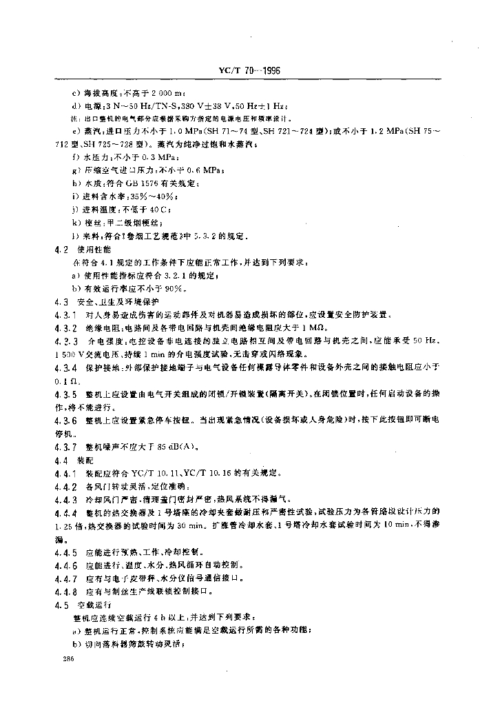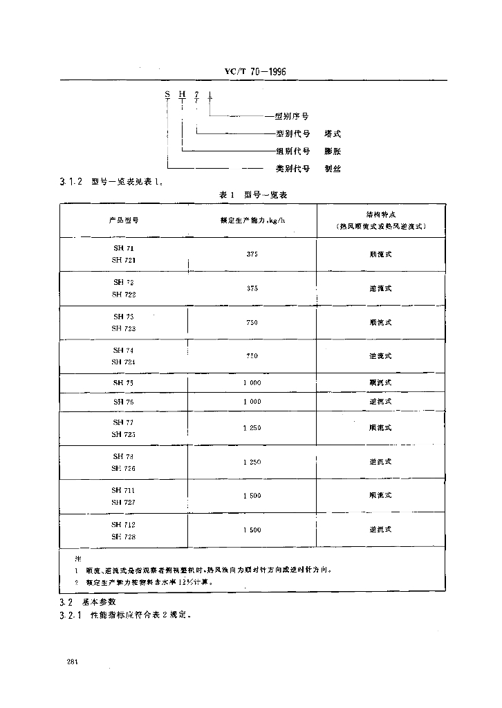 YC/T 70-1996 烟草机械 SH71~78、SH711~712、SH721~728型塔式梗丝膨化装置