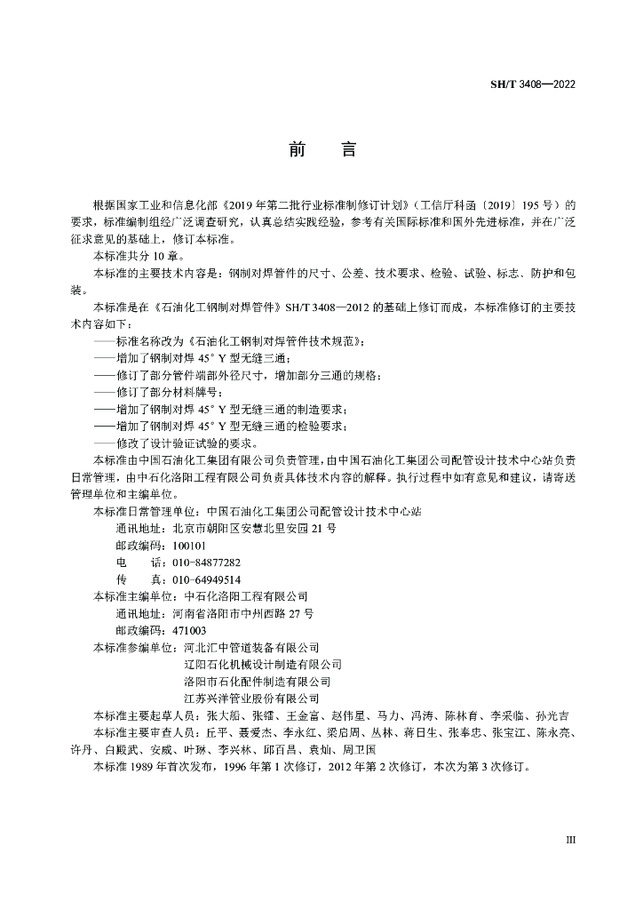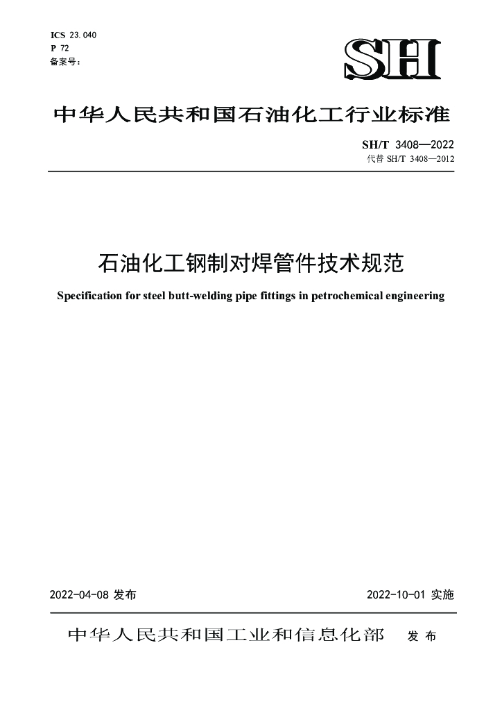 SH/T 3408-2022 石油化工钢制对焊管件技术规范