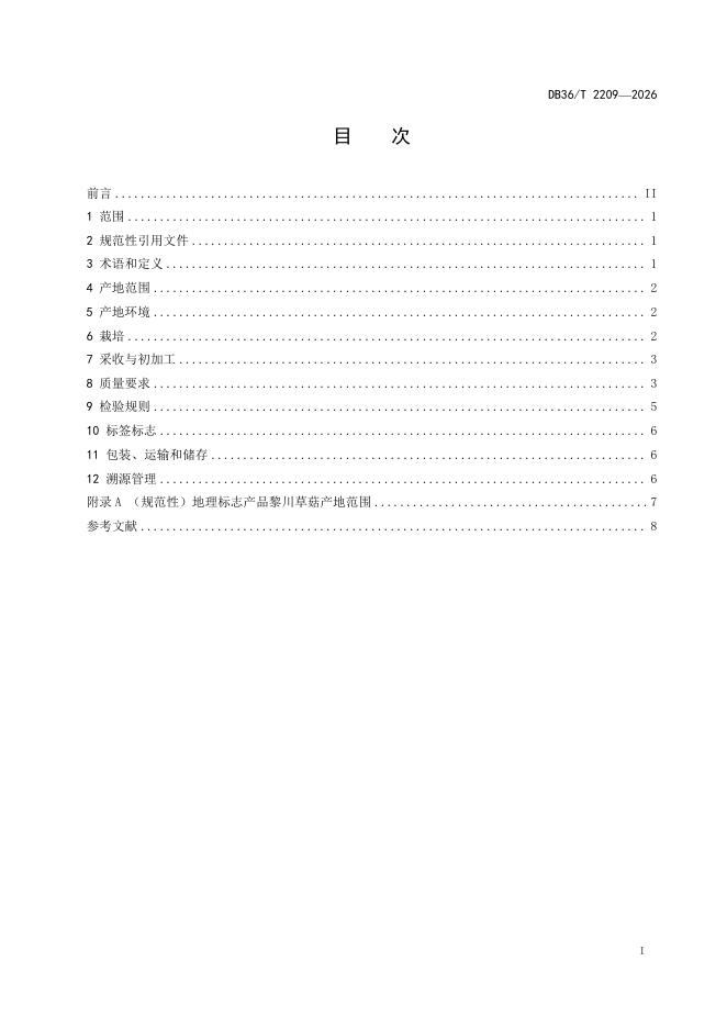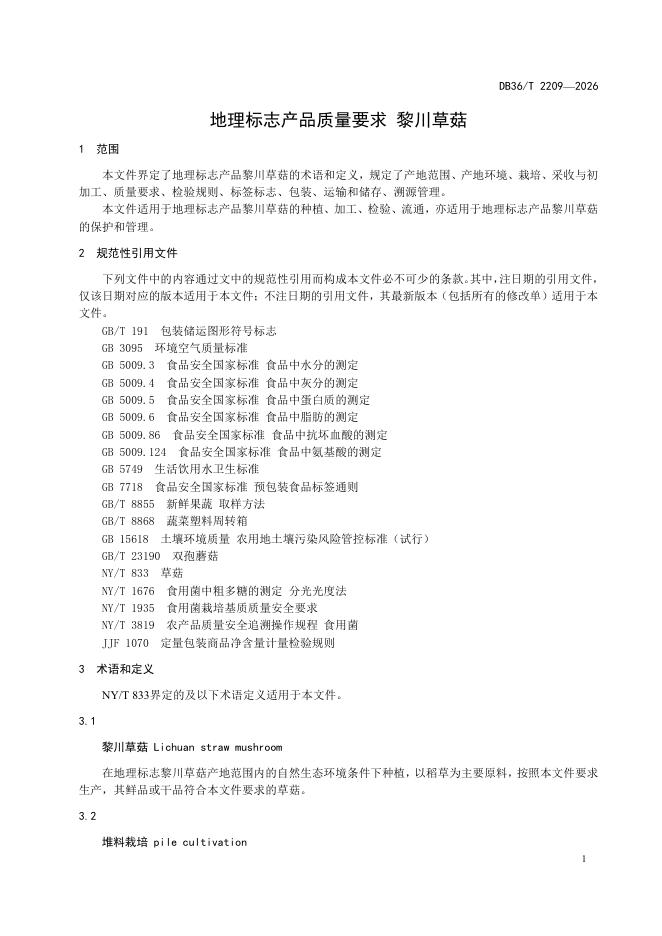 DB36/T 2209-2026 地理标志产品质量要求 黎川草菇