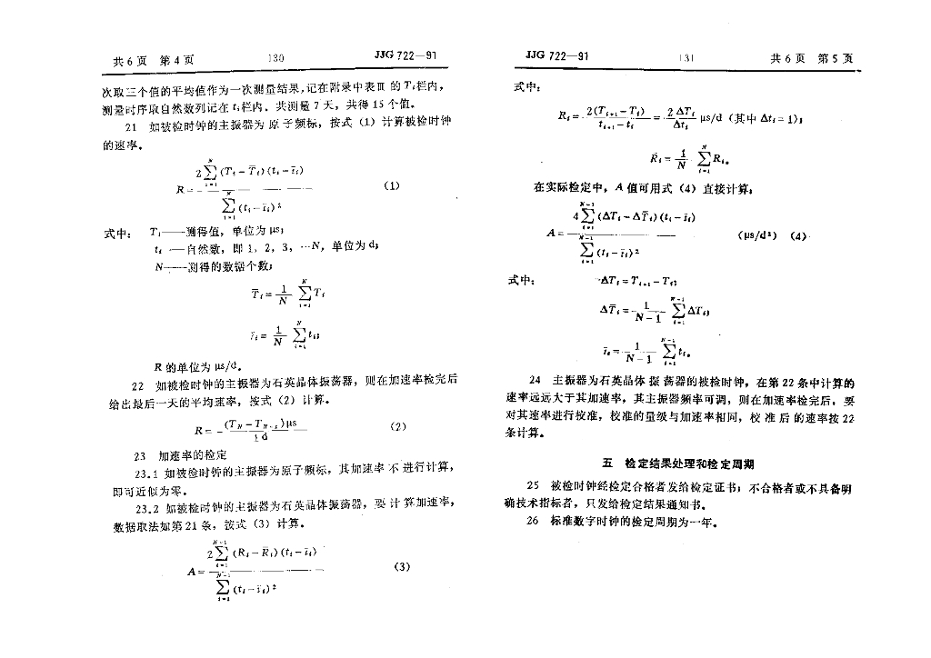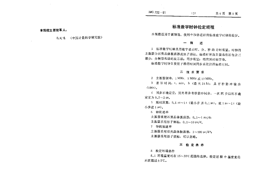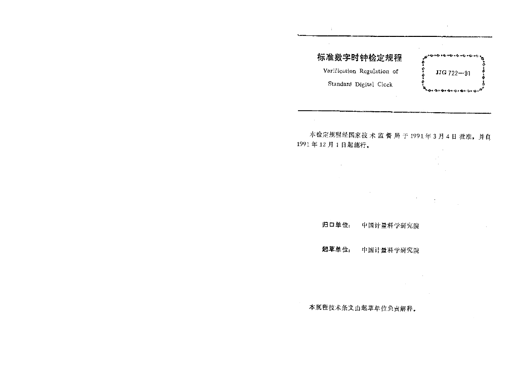 JJG 722-1991 标准数字时钟检定规程