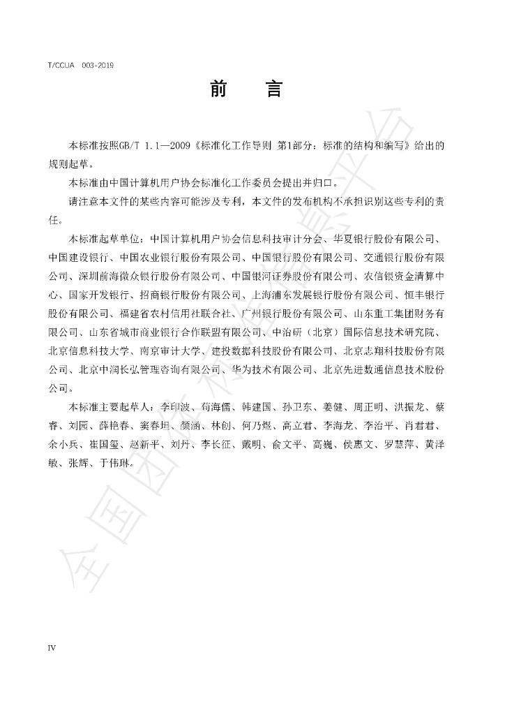 中国计算机用户协会信息科技审计分会、华夏银行股份有限公司、中国建设银行、中国农业银行股份有限公司、中国银行股份有限公司、交通银行股份有限公司、深圳前海微众银行股份有限公司、中国银河证券股份有限公司、农信银资金清算中心、国家开发银行、招商银行股份有限公司、上海浦东发展银行股份有限公司、恒丰银行股份有限公司、福建省农村信用社联合社、广州银行股份有限公司、山东重工集团财务有限公司、山东省城市商业银行合作联盟有限公司、中治研(北京)国际信息技术研究院、北京信息科技大学、南京审计大学、建投数据科技股份有限公司、北京