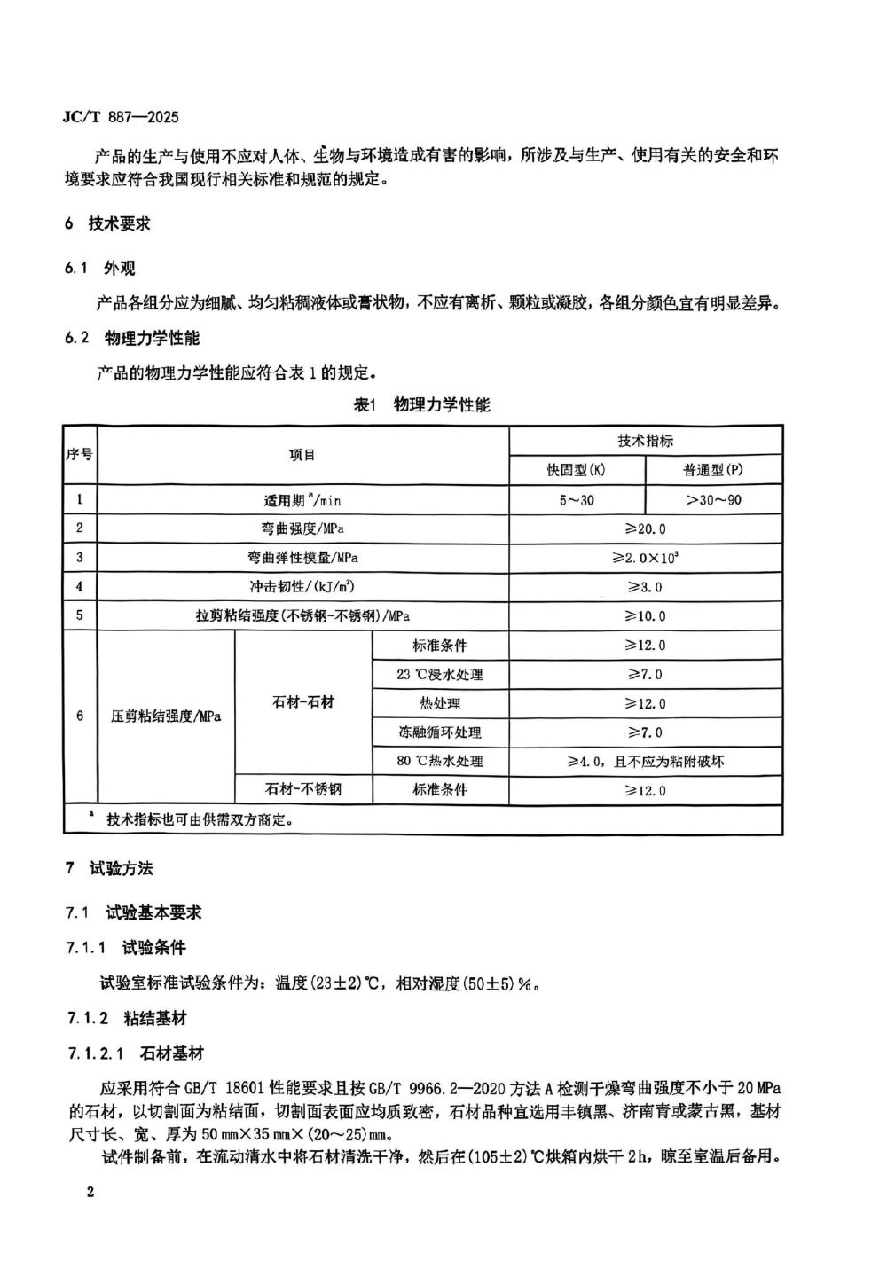 JC/T 887-2025 干挂石材幕墙用环氧胶粘剂