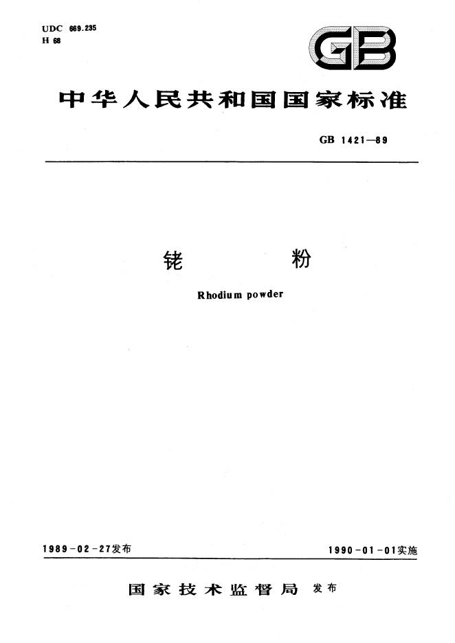 GB/T 1421-1989 铑粉