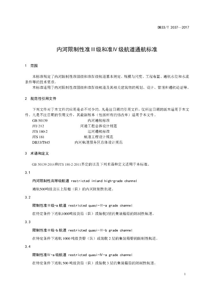 DB33/T 2037-2017 内河限制性准III级和准IV级航道通航标准