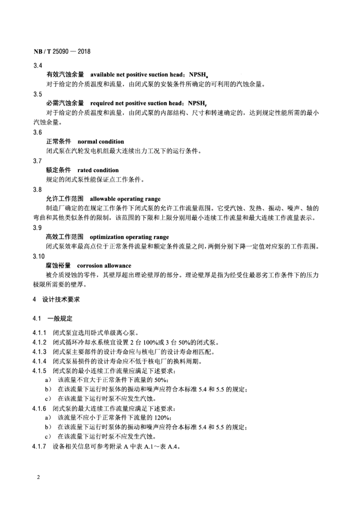 NB/T 25090-2018 核电厂常规岛闭式循环冷却水泵技术条件