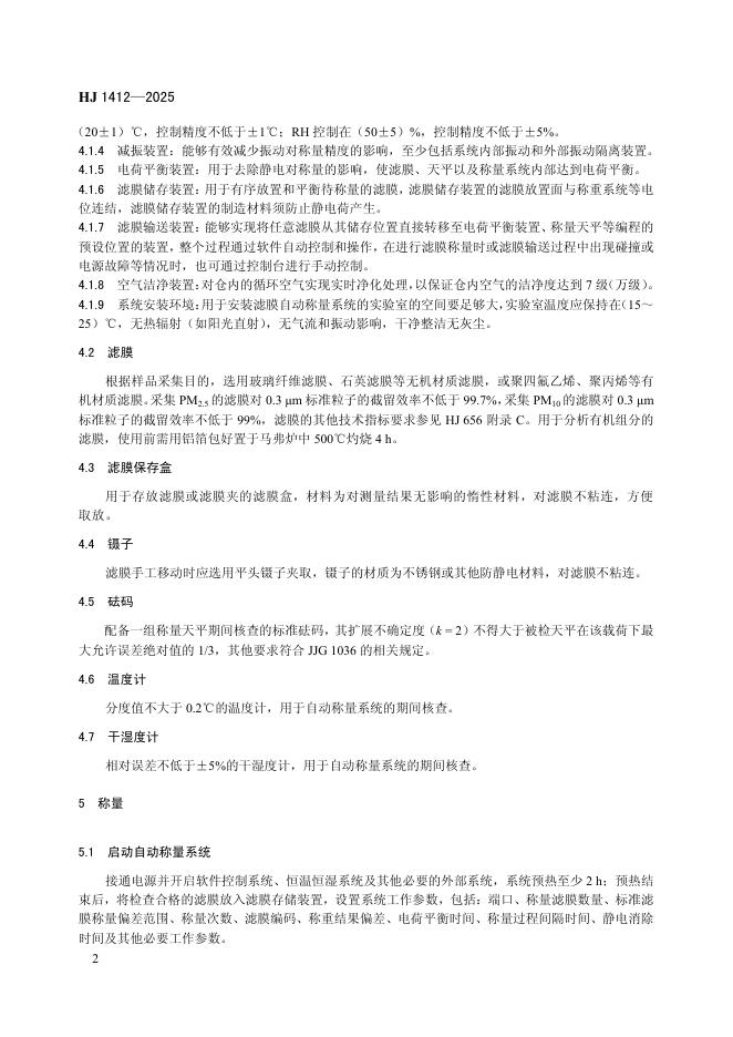 HJ 1412-2025 环境空气 颗粒物来源解析 颗粒物滤膜自动称量技术规范