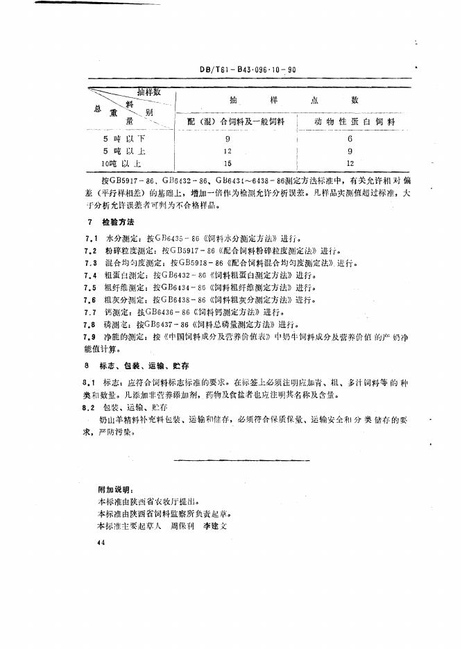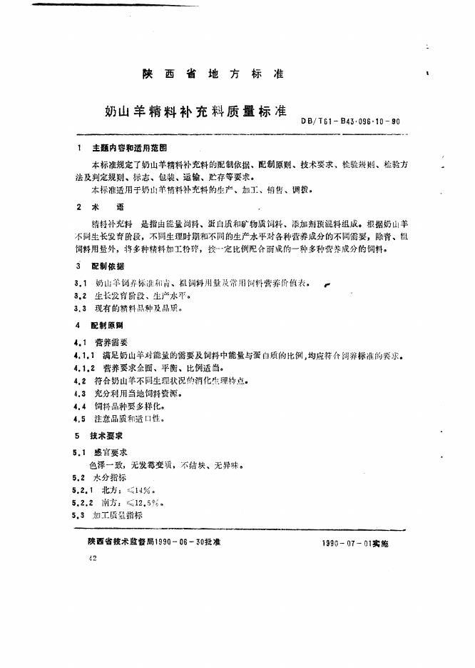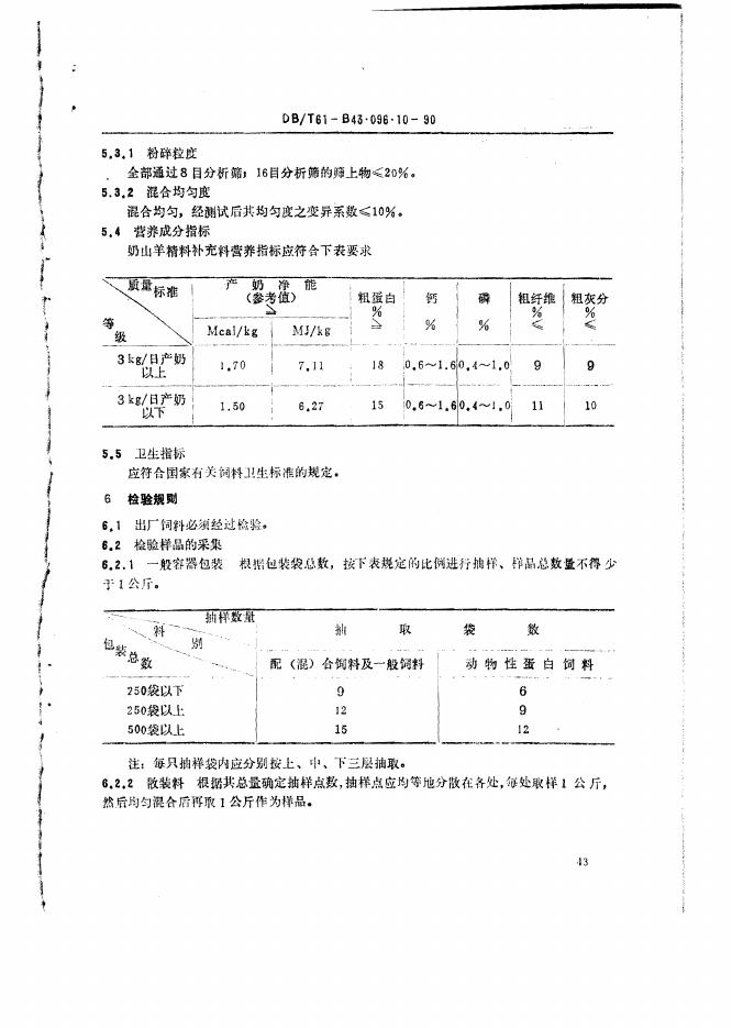 DB61/T B43.096.10-1990 奶山羊精料补充料质量标准