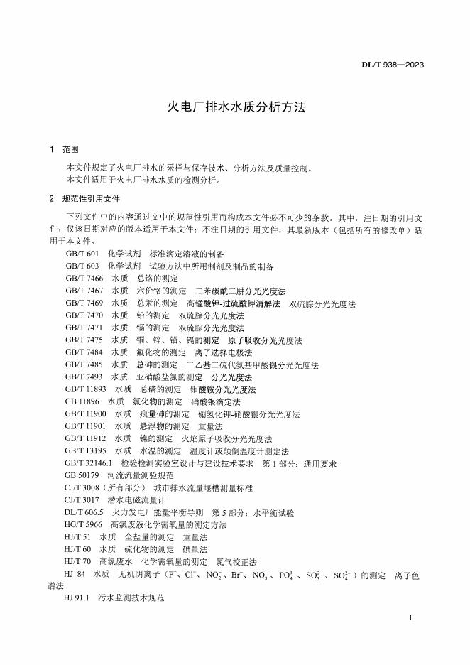 DL/T 938-2023 火电厂排水水质分析方法
