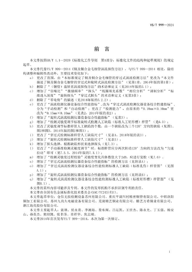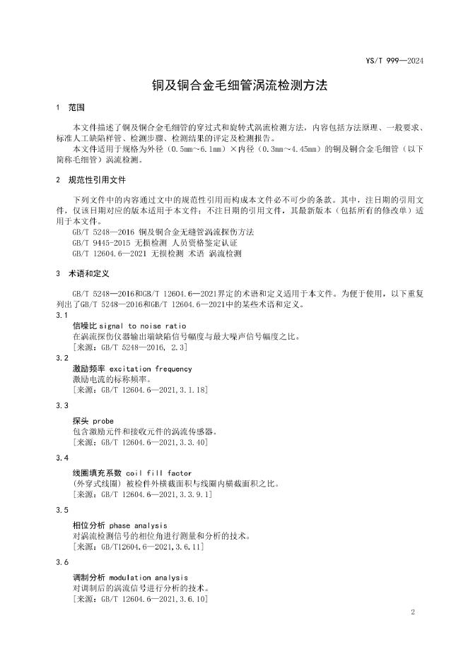 YS/T 999-2024 铜及铜合金毛细管涡流检测方法