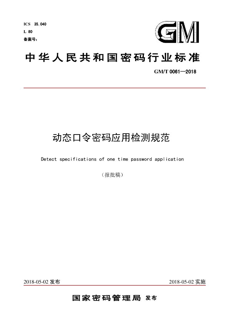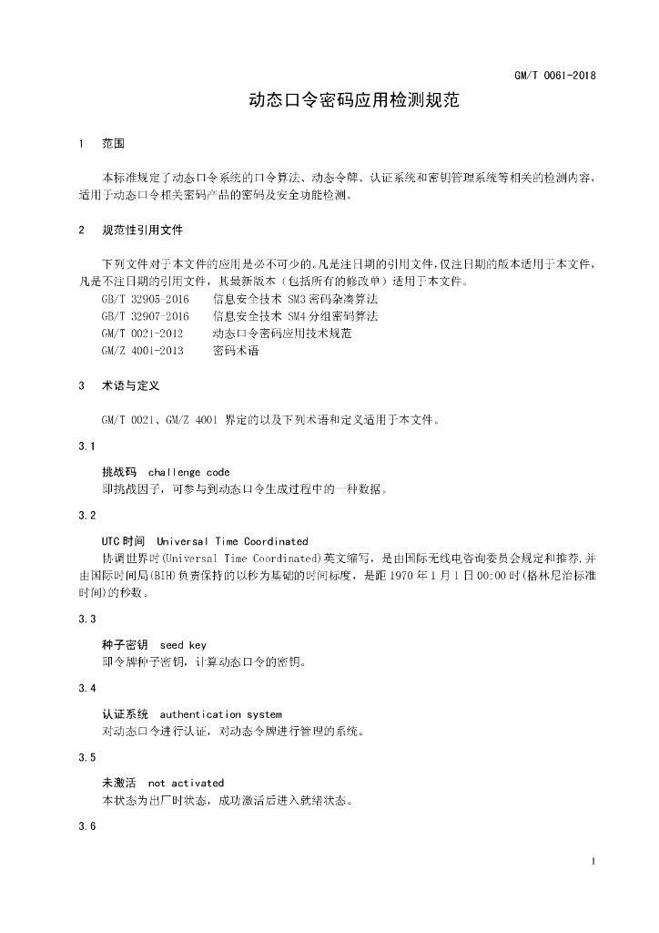 GM/T 0061-2018 动态口令密码应用检测规范(报批稿)