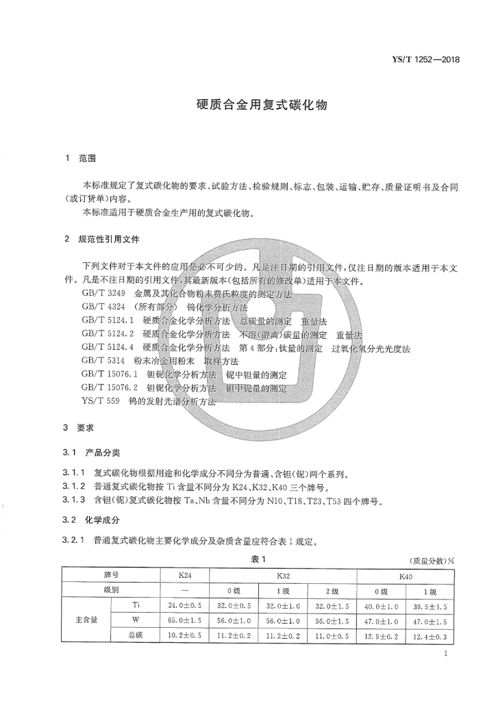 YS/T 1252-2018 硬质合金用复式碳化物