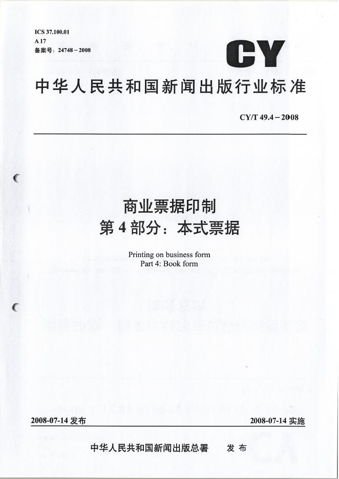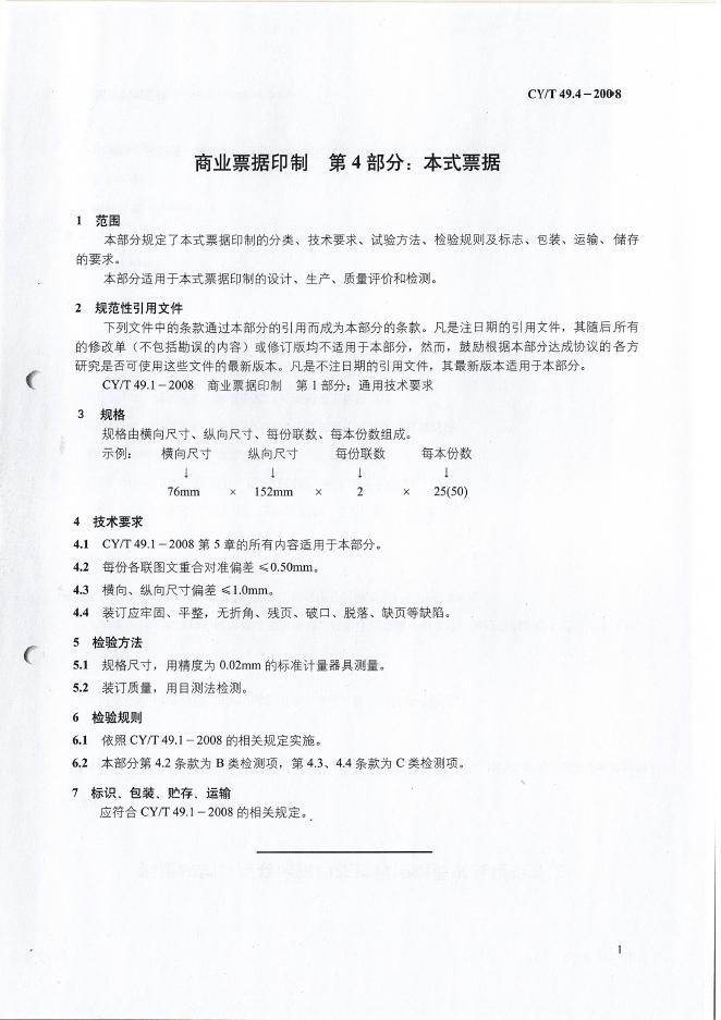 CY/T 49.4-2008 商业票据印制 第4部分:本式票据