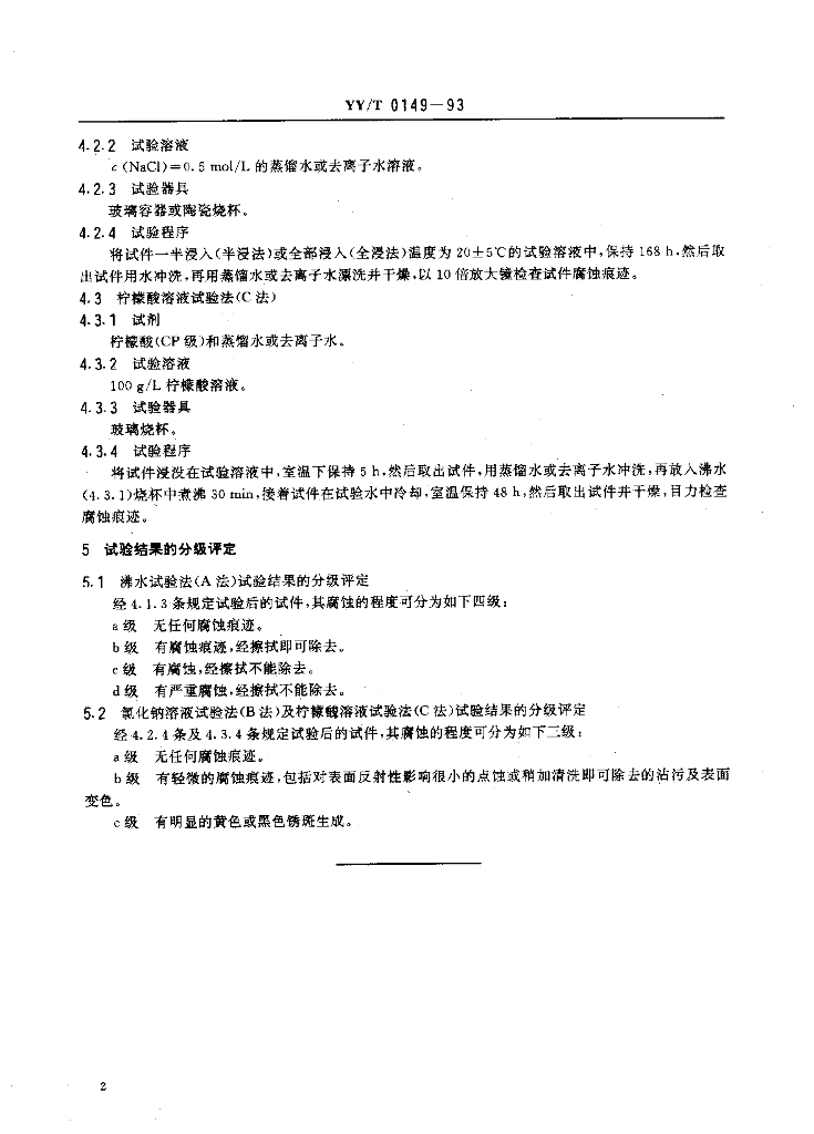 YY/T 0149-1993 不锈钢医用器械耐腐蚀性能试验方法