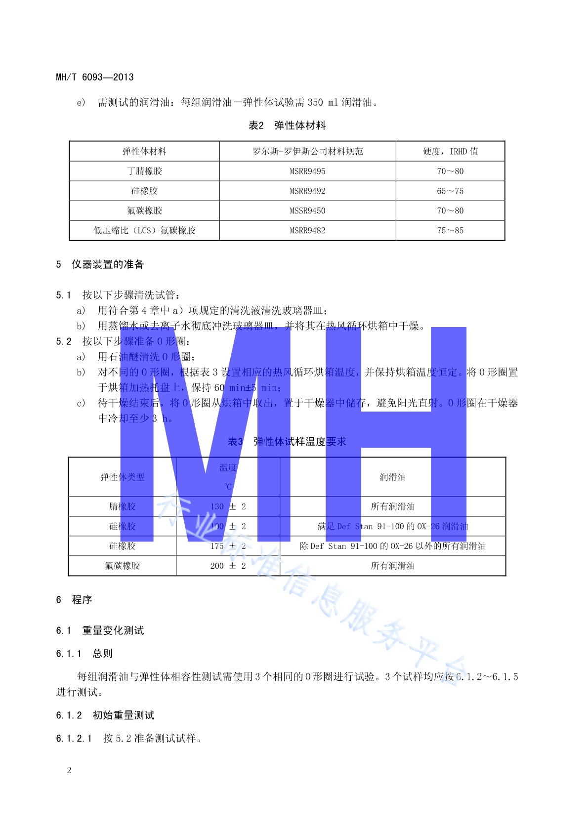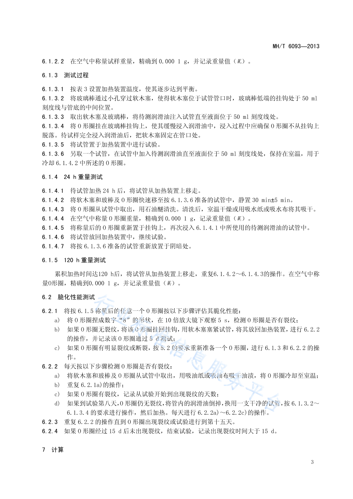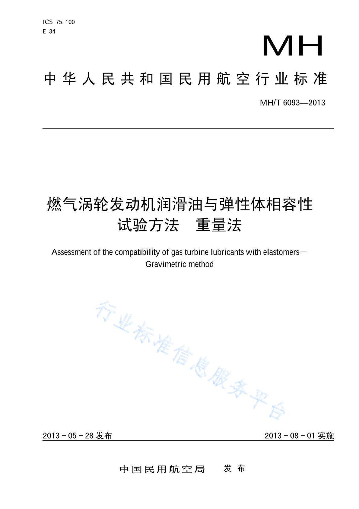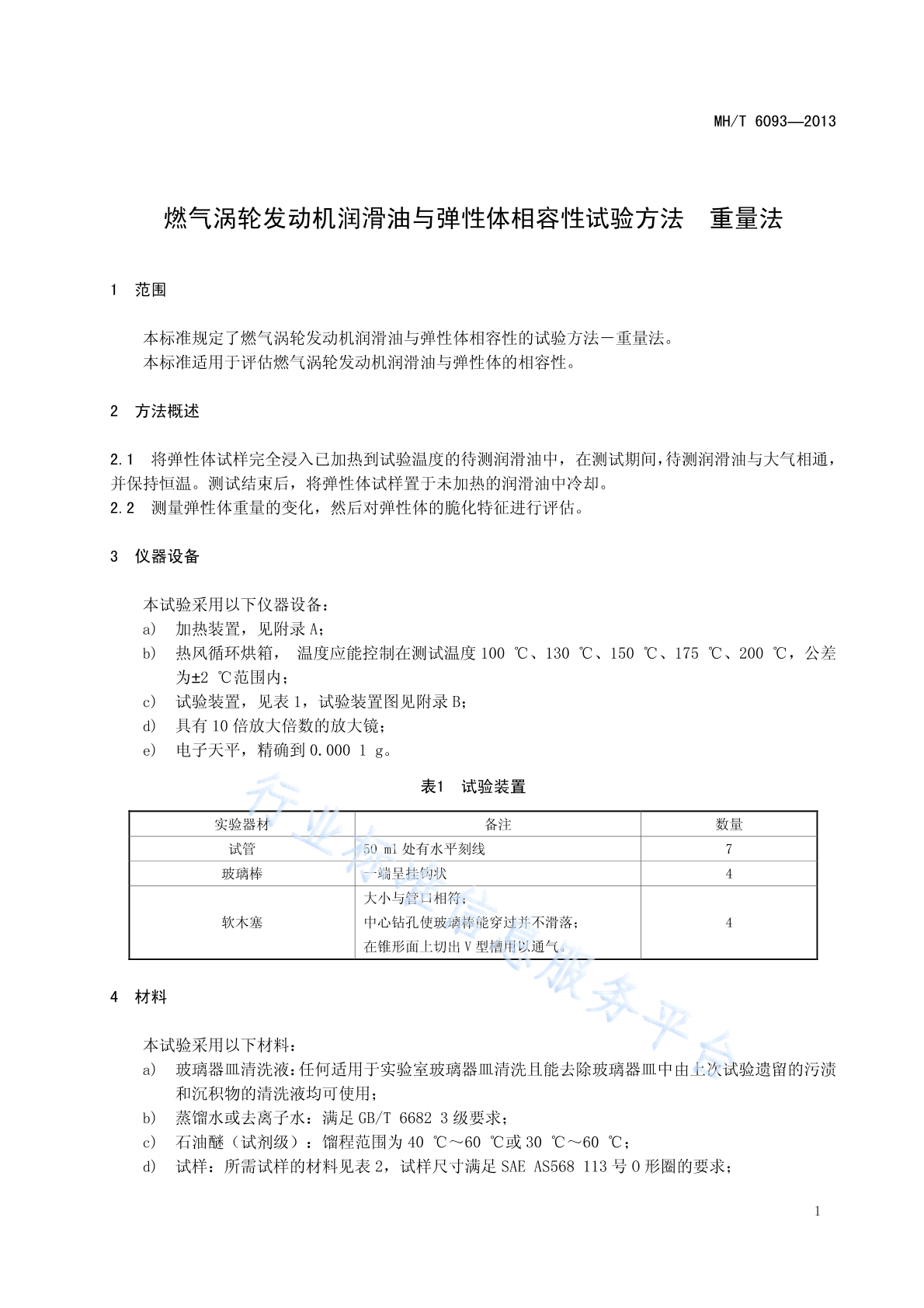 MH/T 6093-2013 燃气涡轮发动机润滑油与弹性体相容性试验方法-重量法