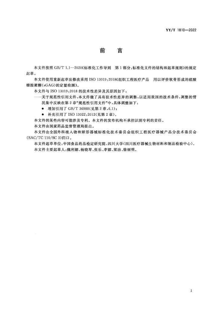 中国食品药品检定研究院、四川大学(四川医疗器械生物材料和制品检验中心)