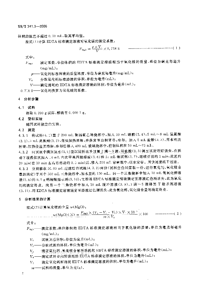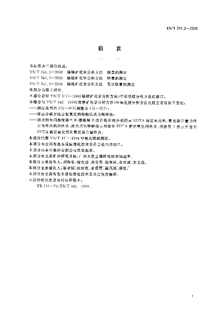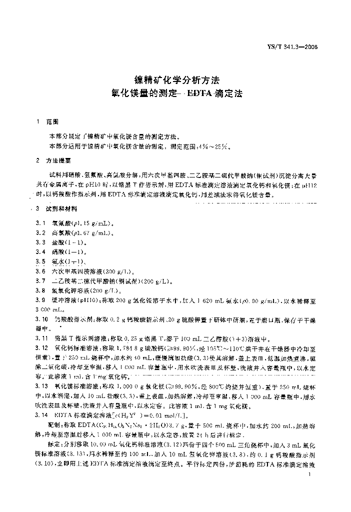 YS/T 341.3-2006 镍精矿化学分析方法氧化镁量的测定EDTA滴定法
