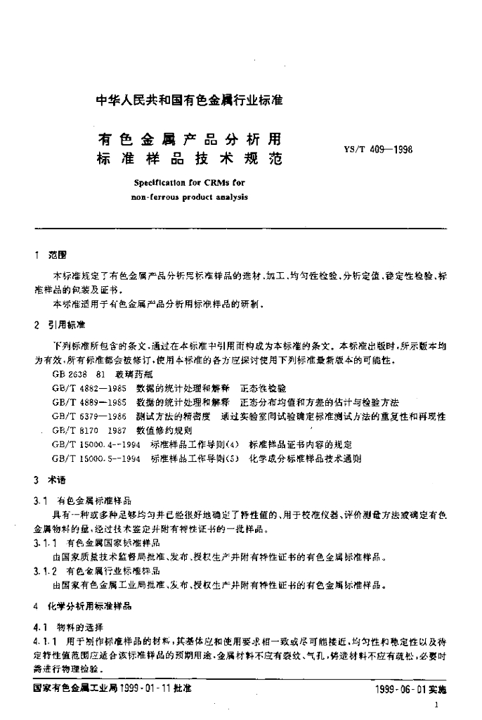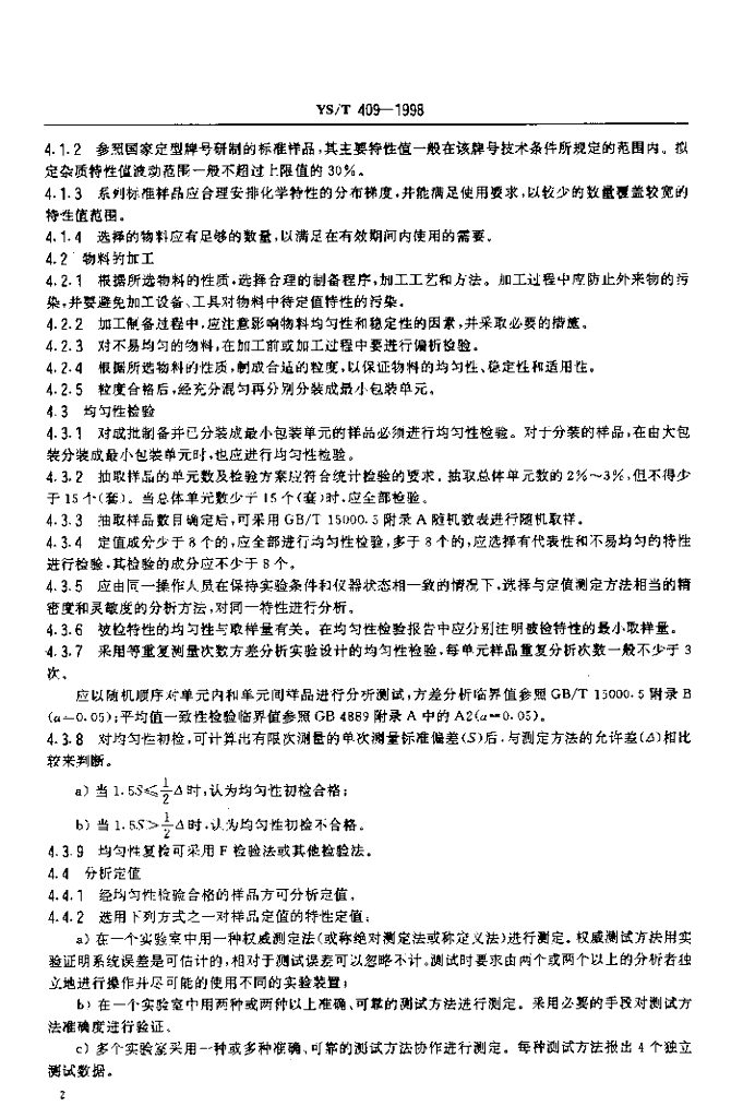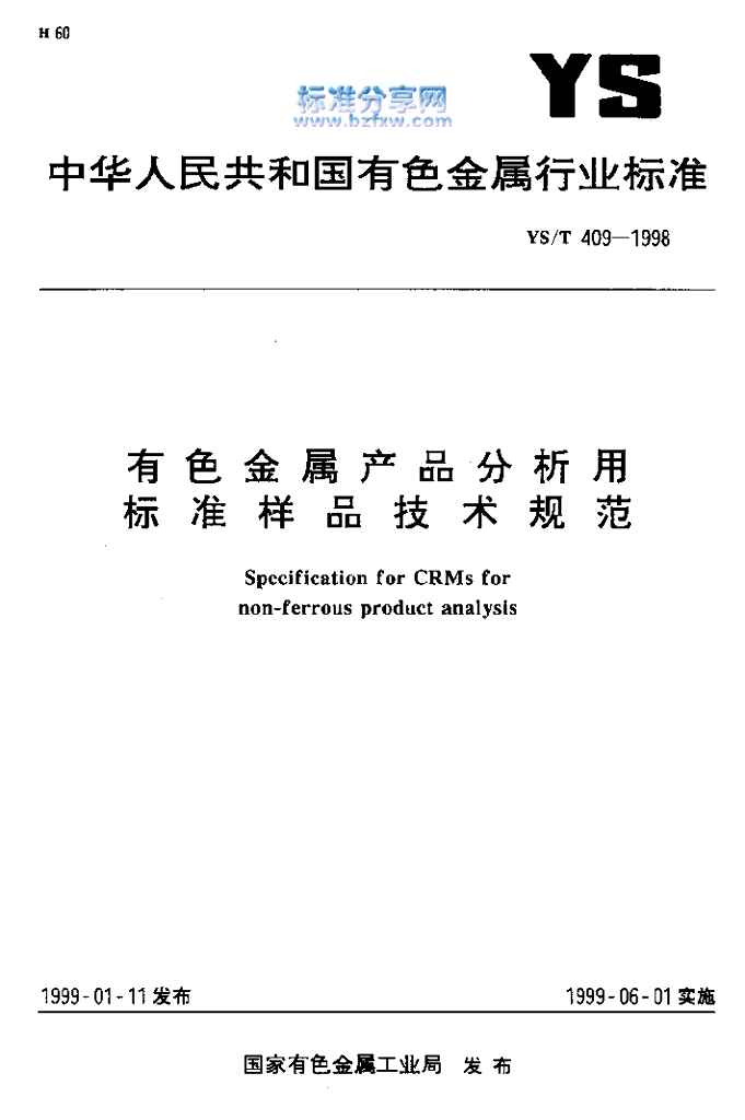 YS/T 409-1998 有色金属产品分析用标准样品技术规范