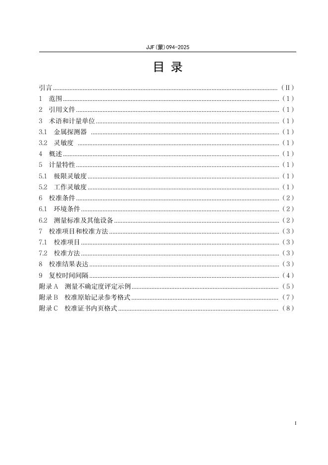 JJF(蒙)094-2025 电磁涡流感应式金属探测器校准规范
