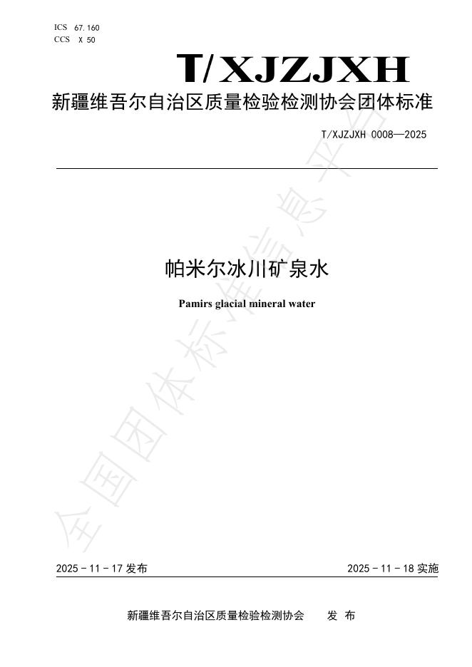 T/XJZJXH 0008-2025 帕米尔冰川矿泉水