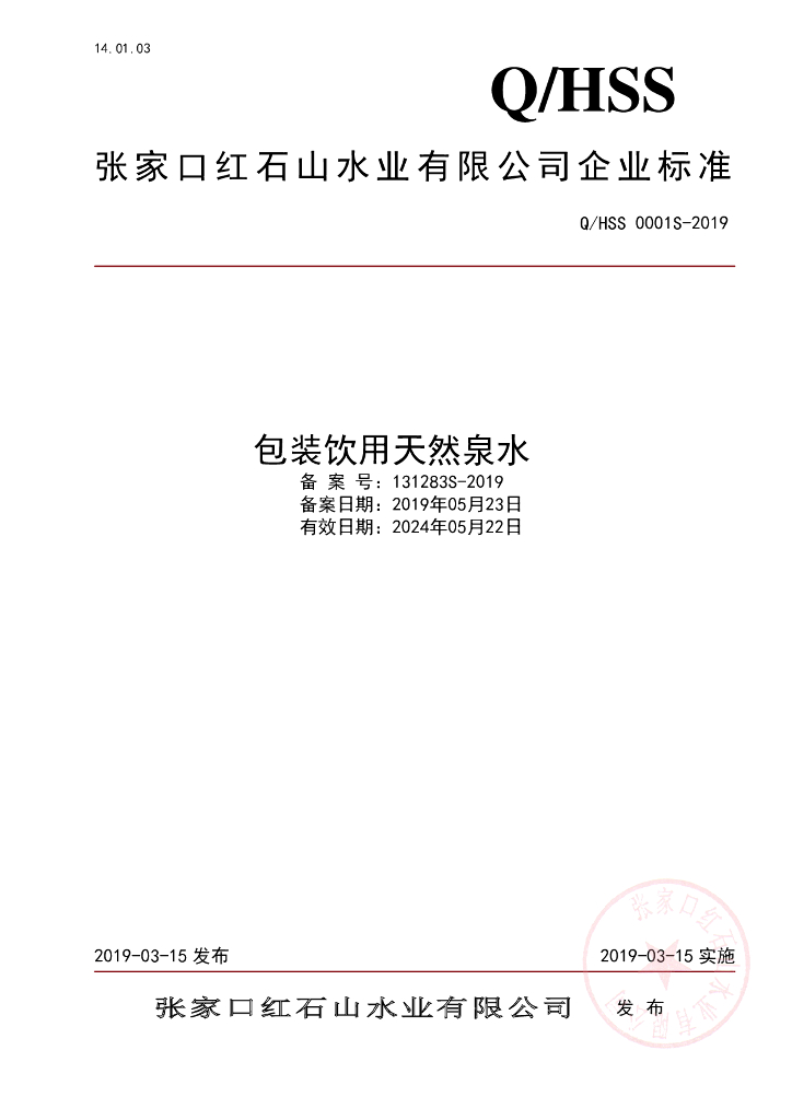 Q/HSS 0001S-2019 包装饮用天然泉水