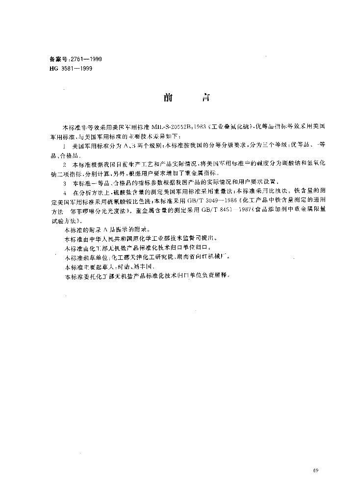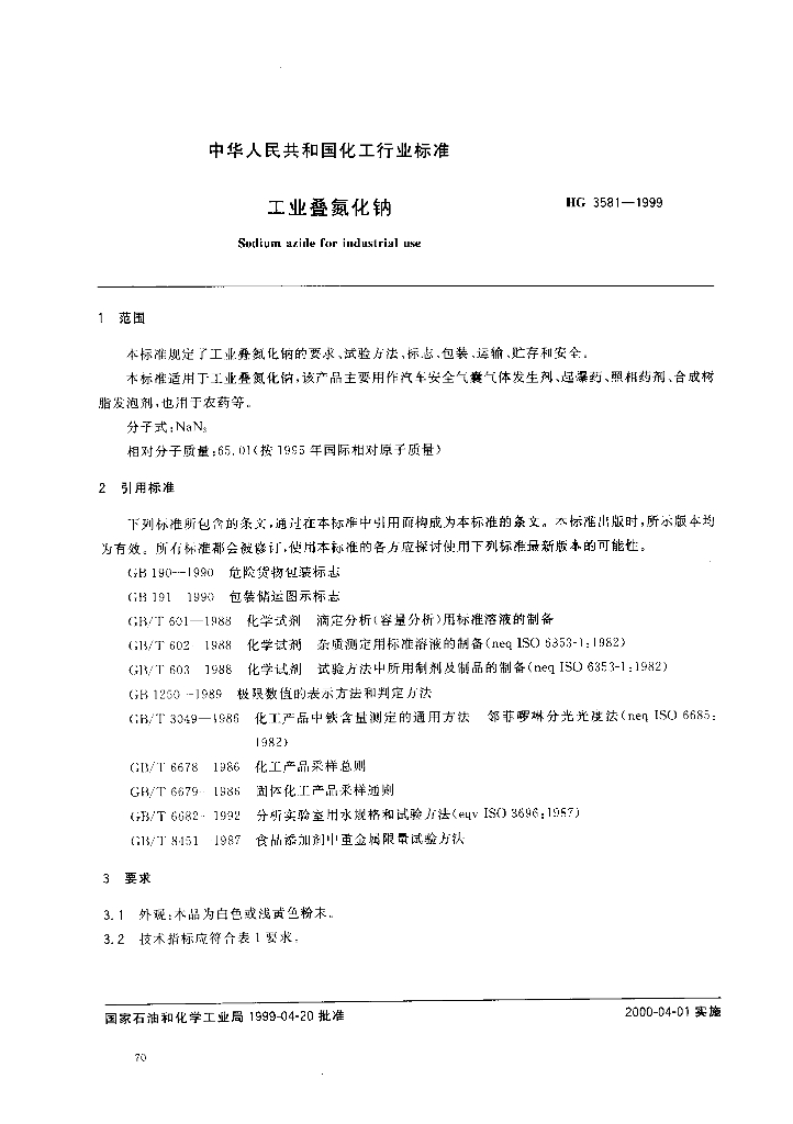 HG 3581-1999 工业叠氮化钠