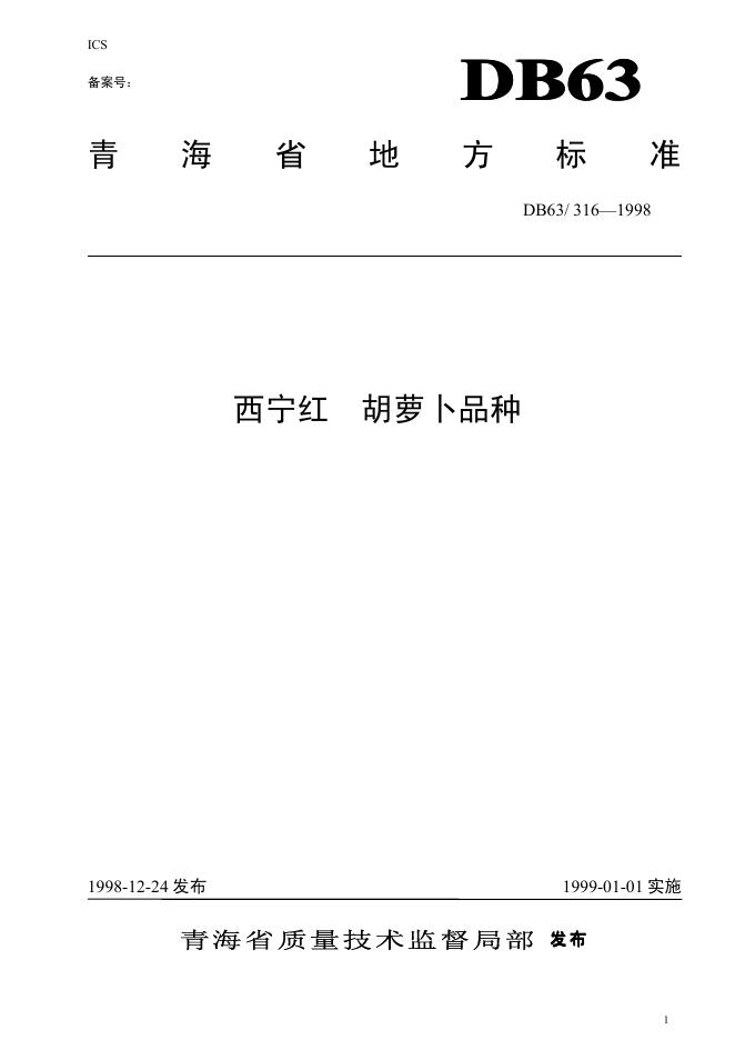DB63/T 316-1998 西宁红萝卜品种