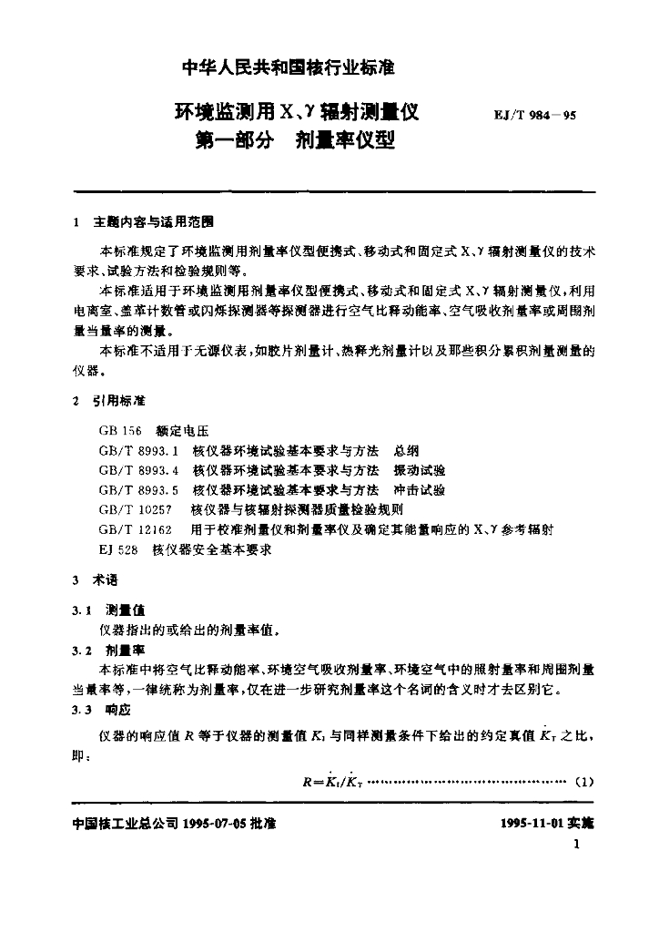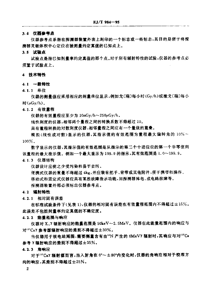 EJ/T 984-1995 环境监测用X、γ辐射测量仪 第一部分 剂量率仪型