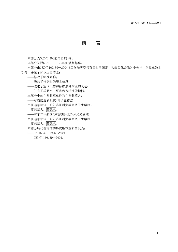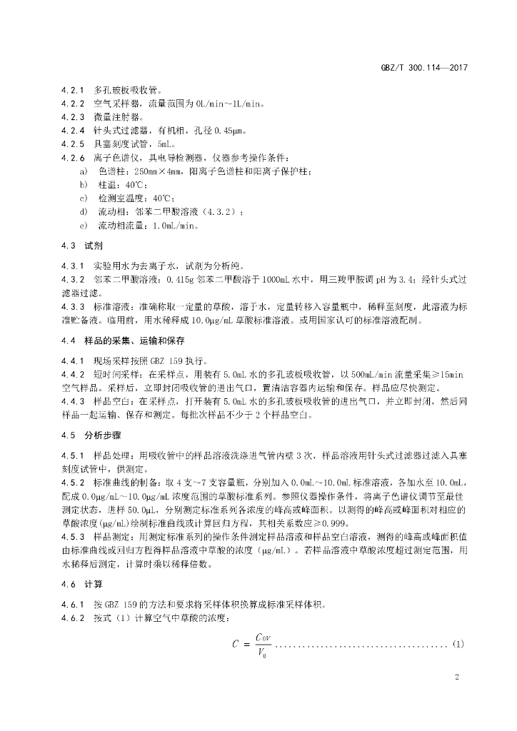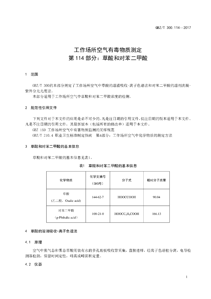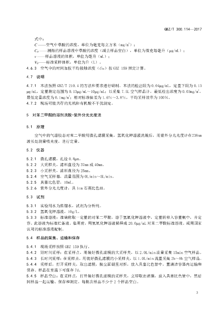 GBZ/T 300.114-2017 工作场所空气有毒物质测定 第114部分:草酸和对苯二甲酸