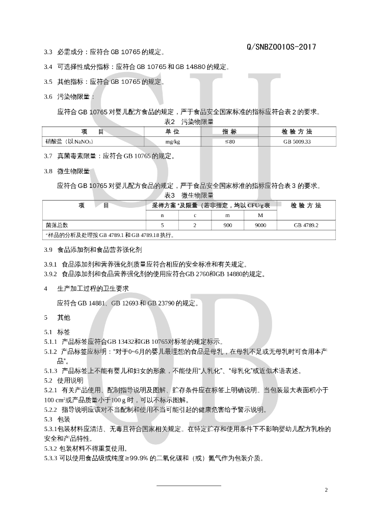 Q/SNBZ 0010S-2017 婴儿配方奶粉(Ⅳ型)
