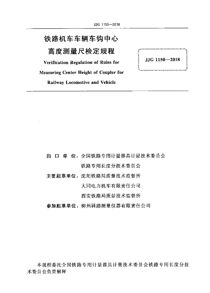 沈阳铁路局质量技术监督所、大同电力机车有限责任公司、西安铁路局质量技术监督所、柳州科路测量仪器有限责任公司