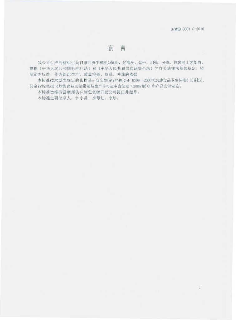 Q/WKB 0001S-2010 核桃仁