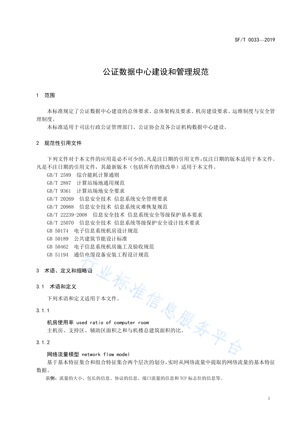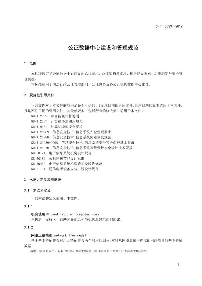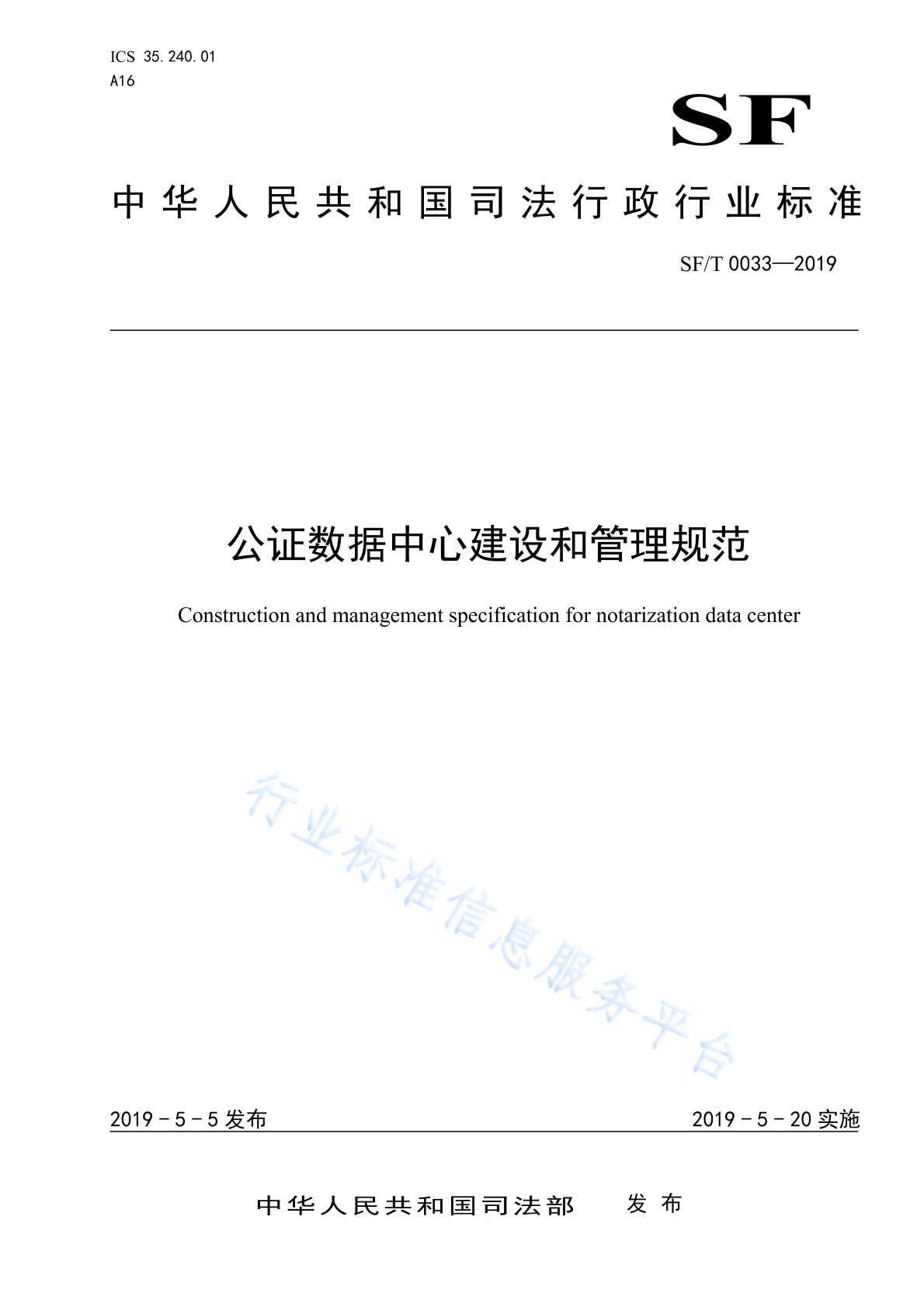 SF/T 0033-2019 公证数据中心建设和管理规范