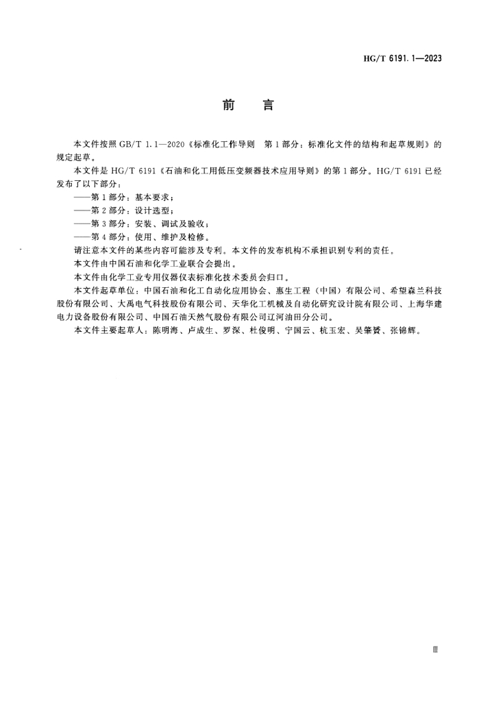 中国石油和化工自动化应用协会、惠生工程(中国)有限公司、希望森兰科技股份有限公司、大禹电气科技股份有限公司、天华化工机械及自动化研究设计院有限公司、上海华建电力设备股份有限公司、中国石油天然气股份有限公司辽河油田分公司