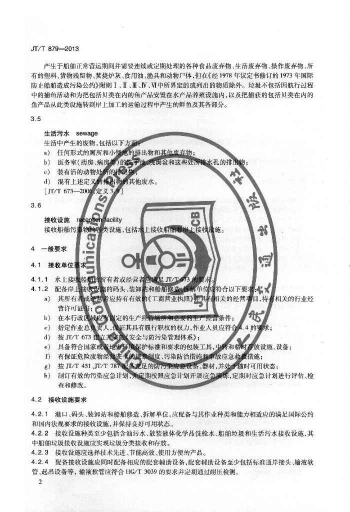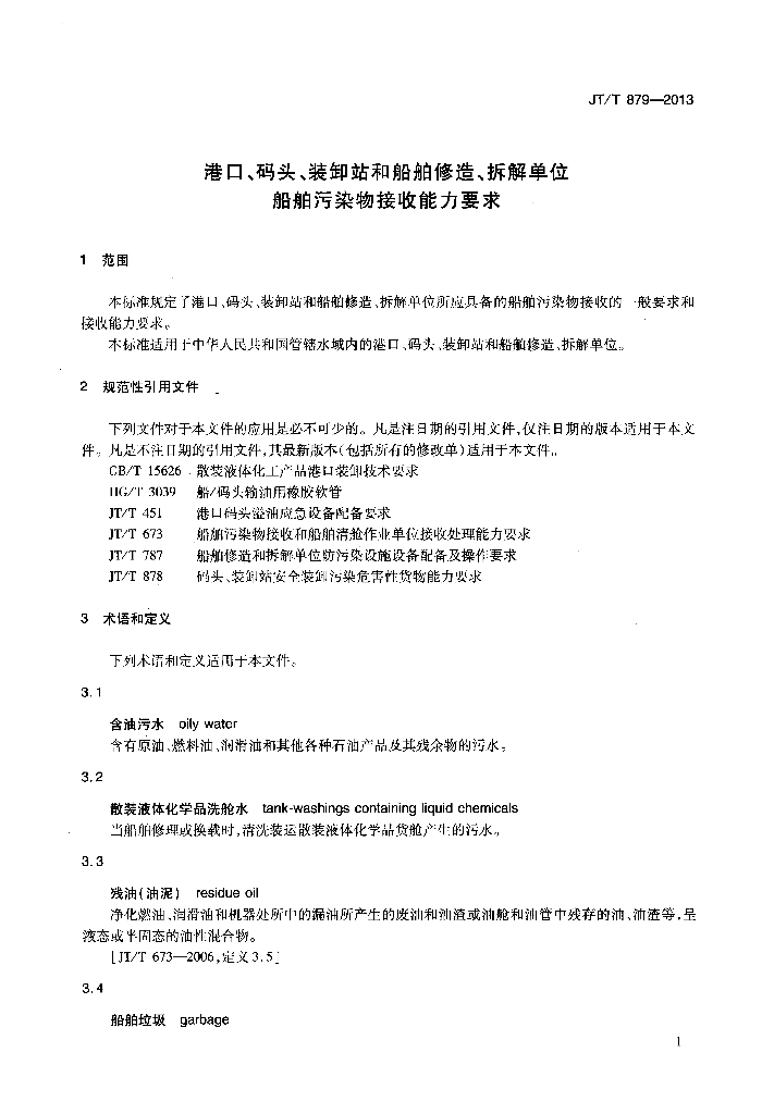 JT/T 879-2013 港口、码头、装卸站和船舶修造、拆解单位船舶污染物接收能力要求