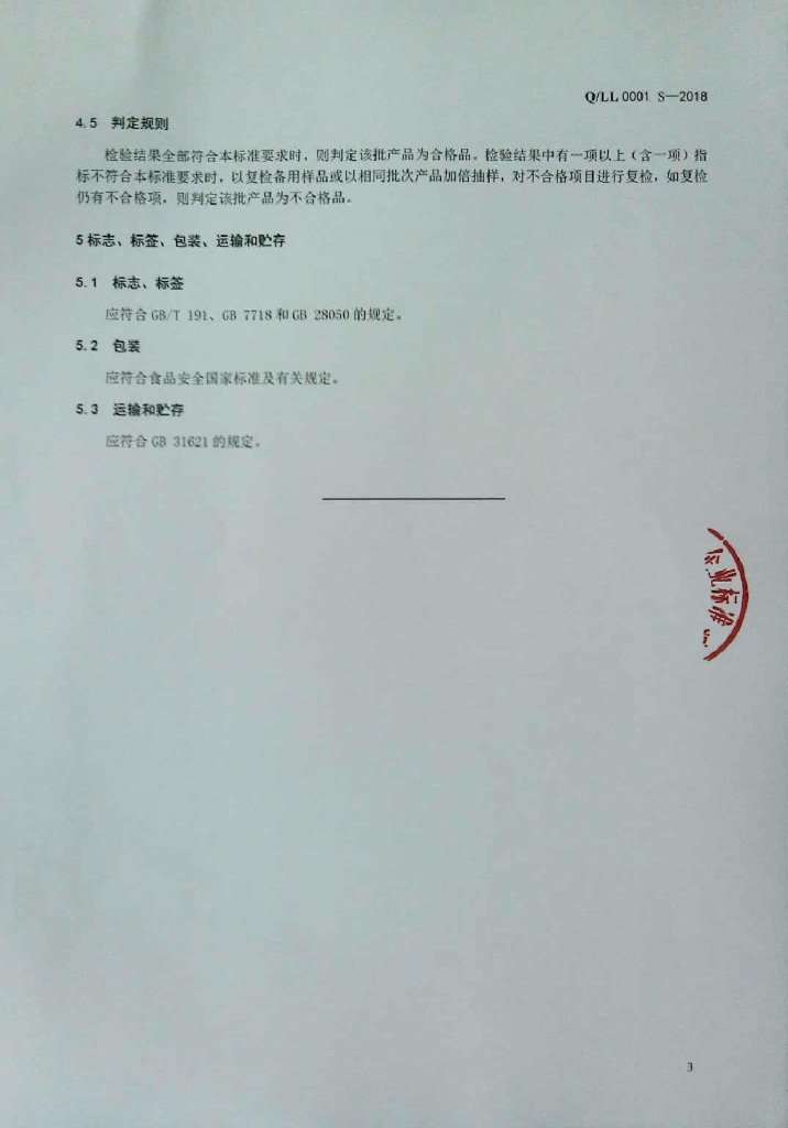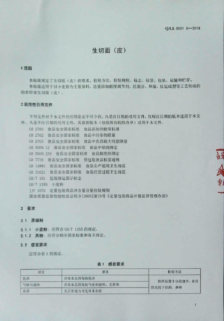Q/LL 0001S-2018 生切面(皮)