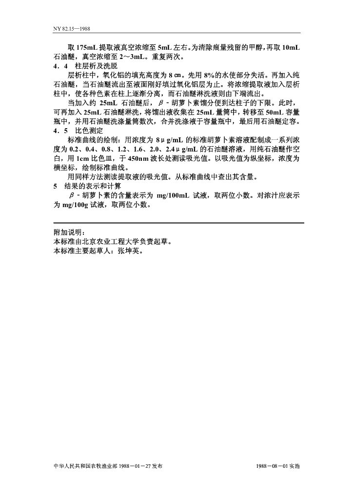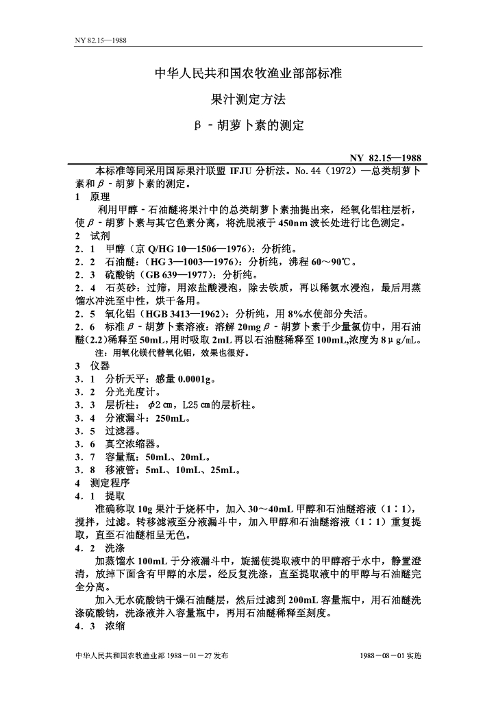 NY/T 82.15-1988 果汁测定方法 β-胡萝卜素的测定