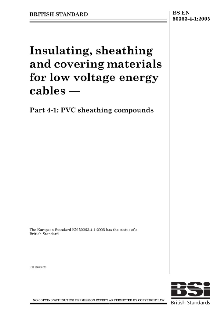 BS EN 50363-4-1:2005 低压电力电缆绝缘,护套和内衬材料 第4-1部分 PVC护套化合物